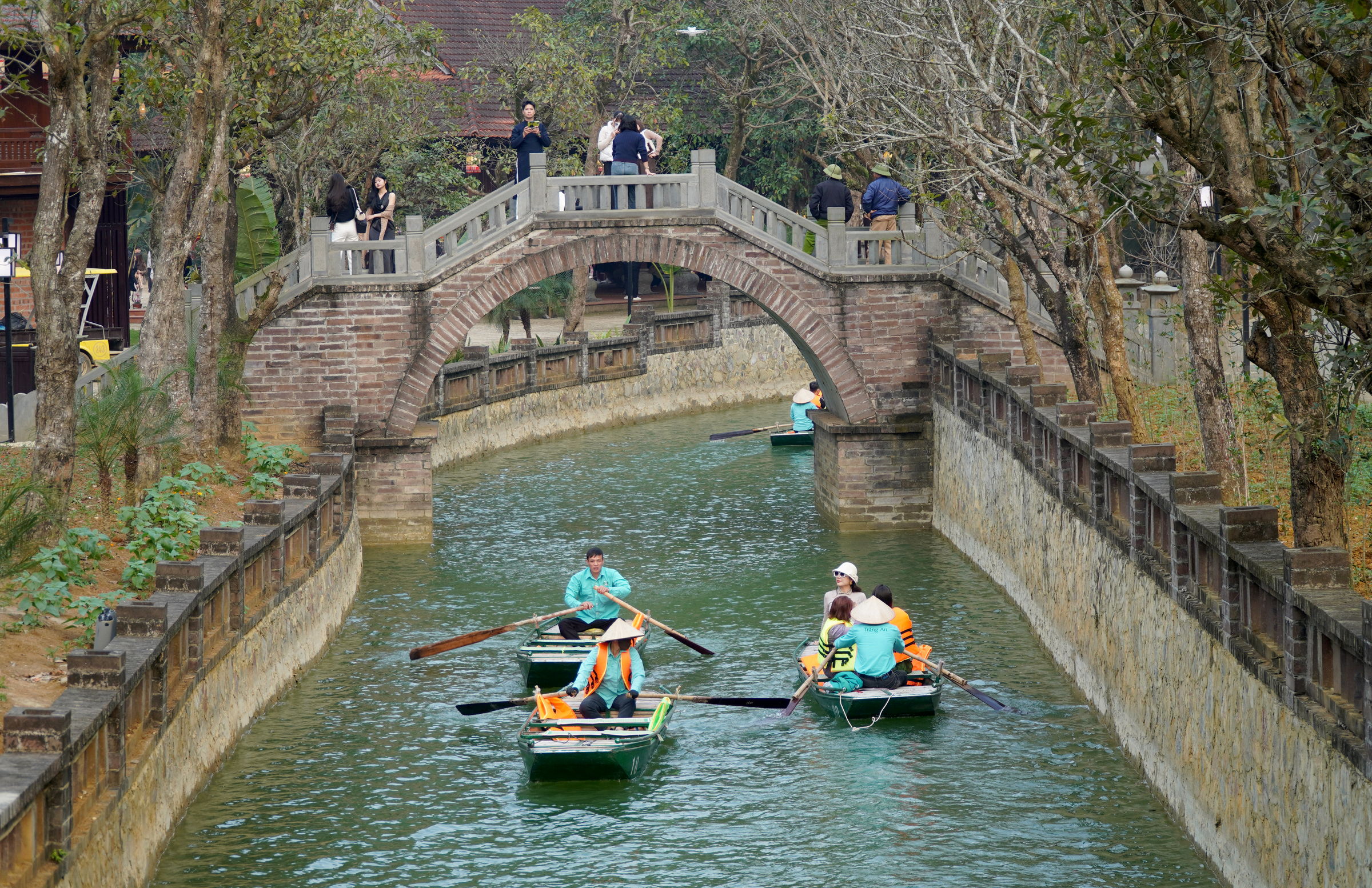 Tourists boating to sightsee at Kinh Thien Temple relic, Trang An, Ninh Binh. Photo: Le Hoang
