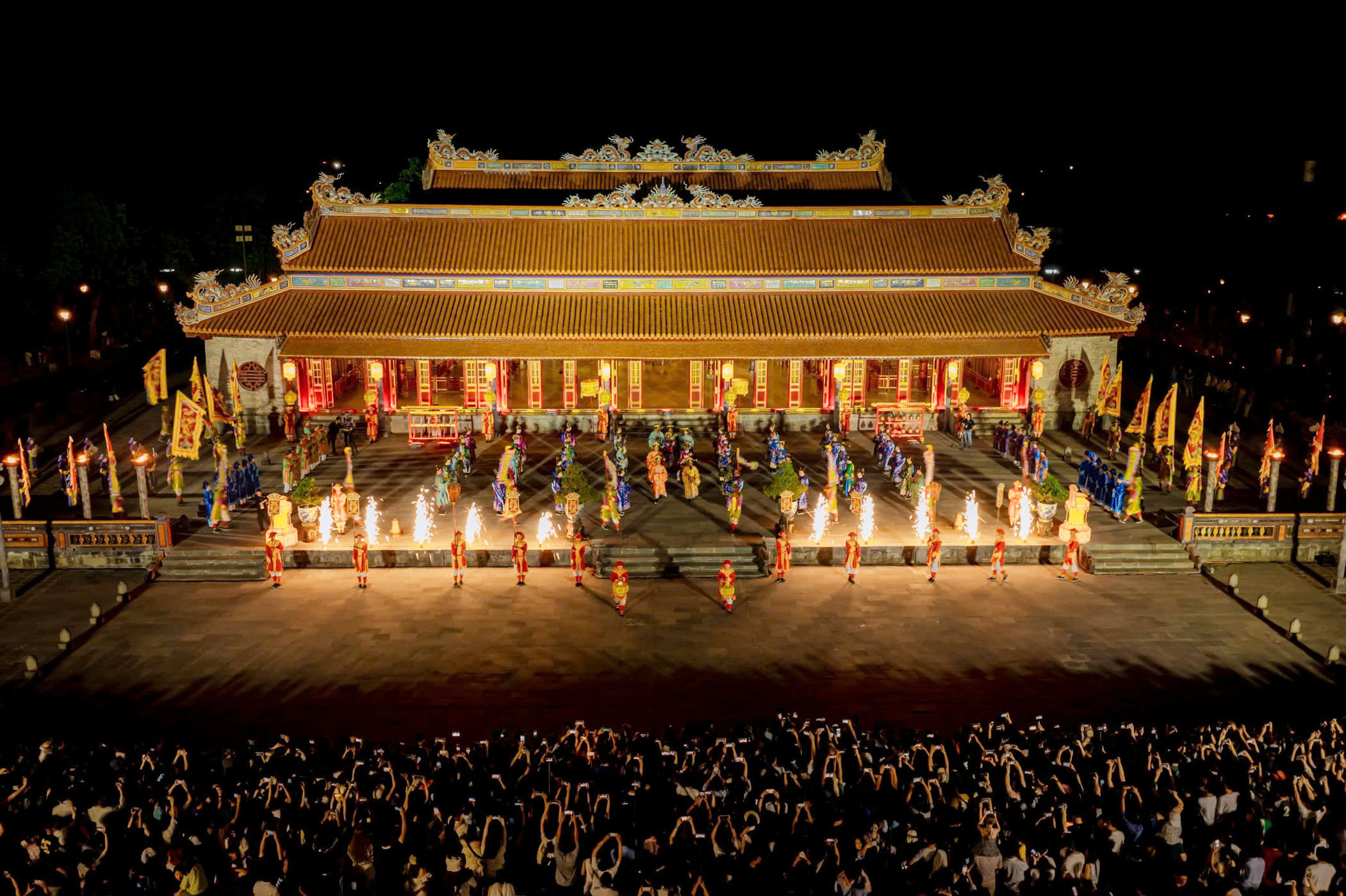 A highlight was the staged reenactment of the Thiet Trieu, recreating the solemn atmosphere of a Nguyen Dynasty court session before Thai Hoa Palace. Nguyen Van An, 26, a tourist from Hanoi, expressed his impression of the architecture and ethereal nighttime ambiance of Hue Imperial Palace during his first visit.