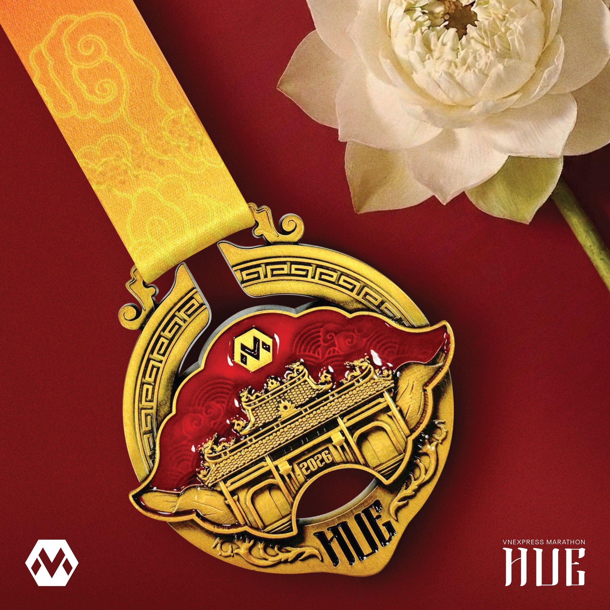 Front of the VnExpress Marathon Hue 2026 medal. Photo: VnExpress Marathon
