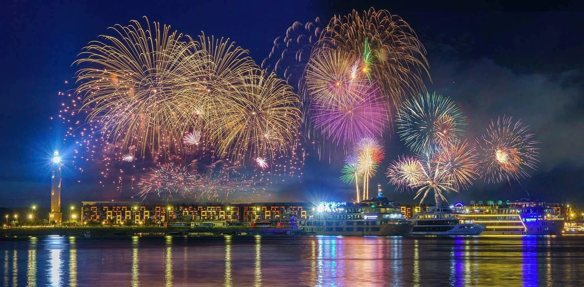 Fireworks displayed by the bay. Photo: Sun Group |