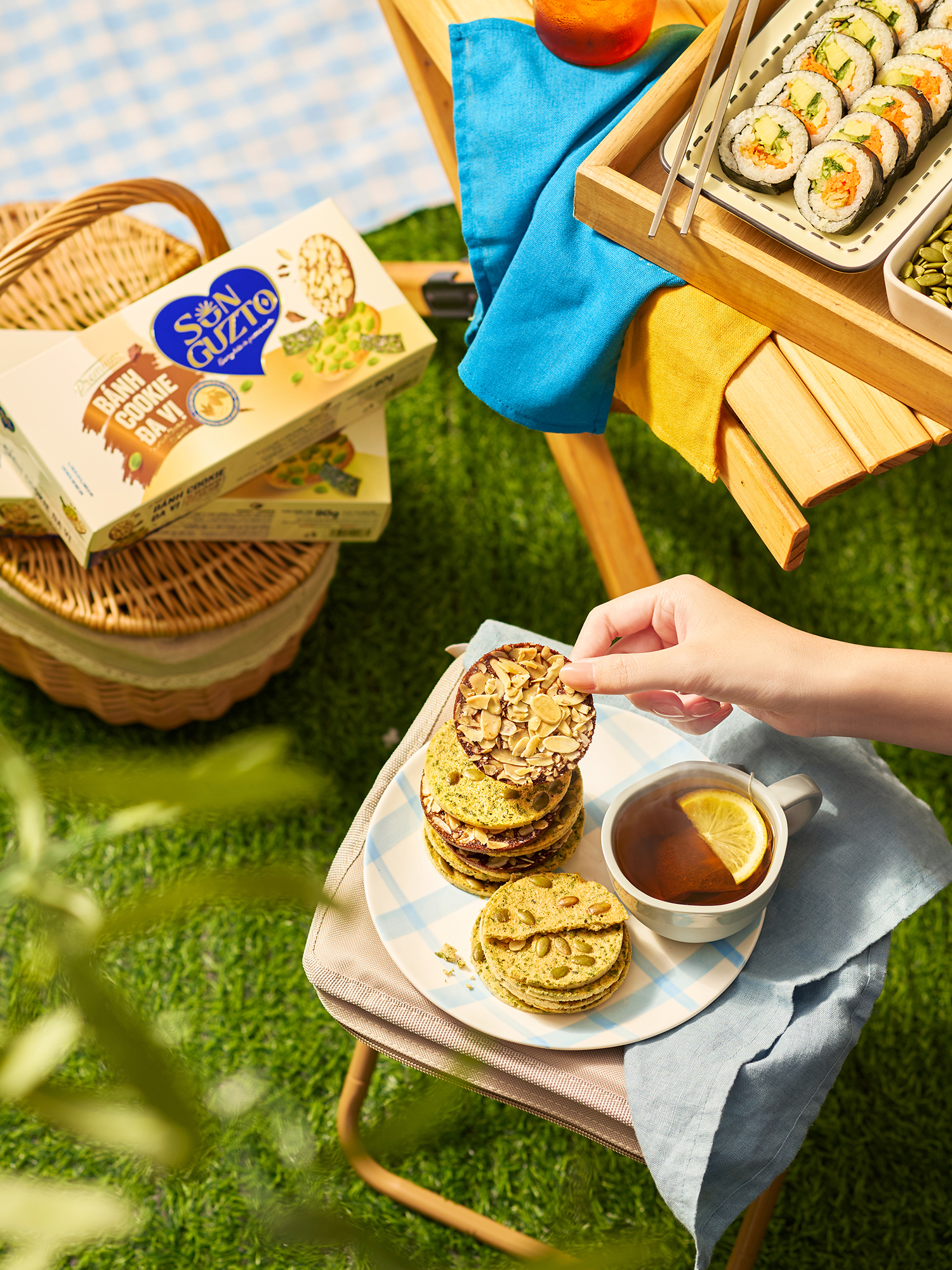 Beyond its impressive taste, Sun Guzto also captivates with its thick, golden almond layer and mild fragrance. When enjoyed, the cookies are crispy yet not dry, subtly rich, and moderately sweet, making them easily addictive.