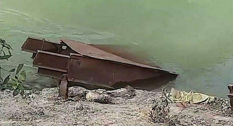 The remaining steel parts of the 10-ton bridge stolen in Chhattisgarh state, India. Photo: India Today