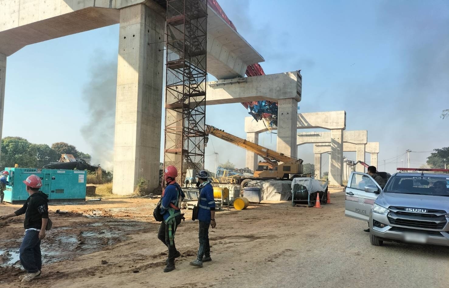 On 14/1, a train traveling from Krung Thep Aphiwat station to Ubon Ratchathani was struck by a falling crane. The incident occurred beneath a construction site in Sikhio district, Nakhon Ratchasima province, 230 km northeast of Bangkok. The crane, which was lifting concrete for an elevated railway project, suddenly fell, hitting the moving train below.