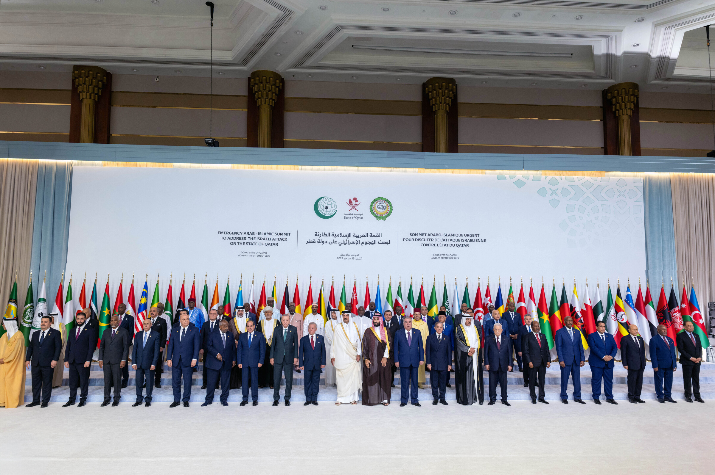 Leaders of Arab and Muslim countries at the summit in Doha, Qatar on 15/9. Photo: AFP