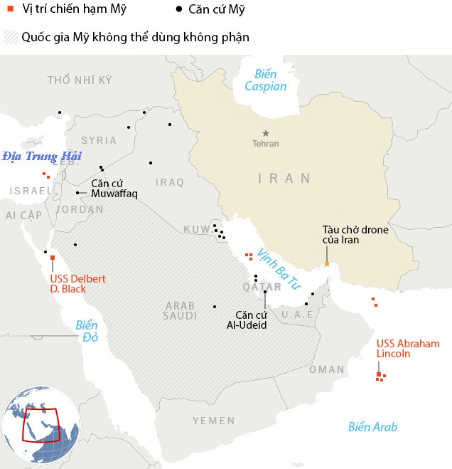 Dozens of US military aircraft have also been deployed to the Middle East, stationed at various locations, such as Al Udeid base outside the capital Doha, Qatar, the largest US military base in the region.