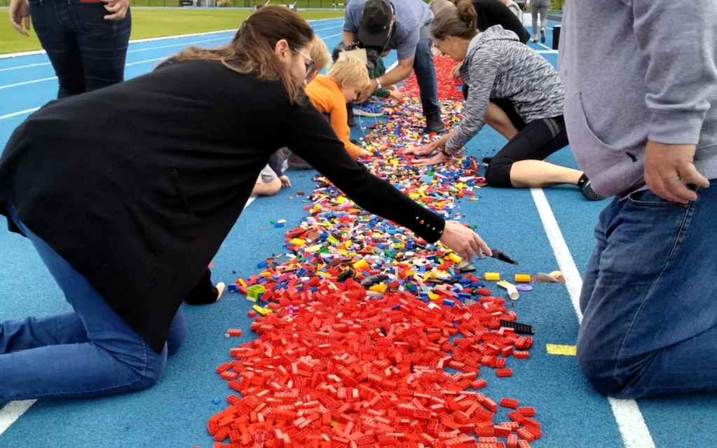 After months of preparation, in January, Wall, along with dozens of friends and family, created a 100-meter track using 300 kg of Lego at a Christchurch athletics facility.