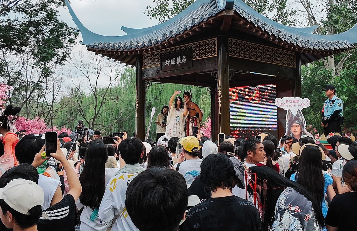 Even offstage, NPCs film clips and livestream, promoting themselves and interacting with fans met in the park. On Douyin, fans can send virtual gifts worth thousands of CNY.