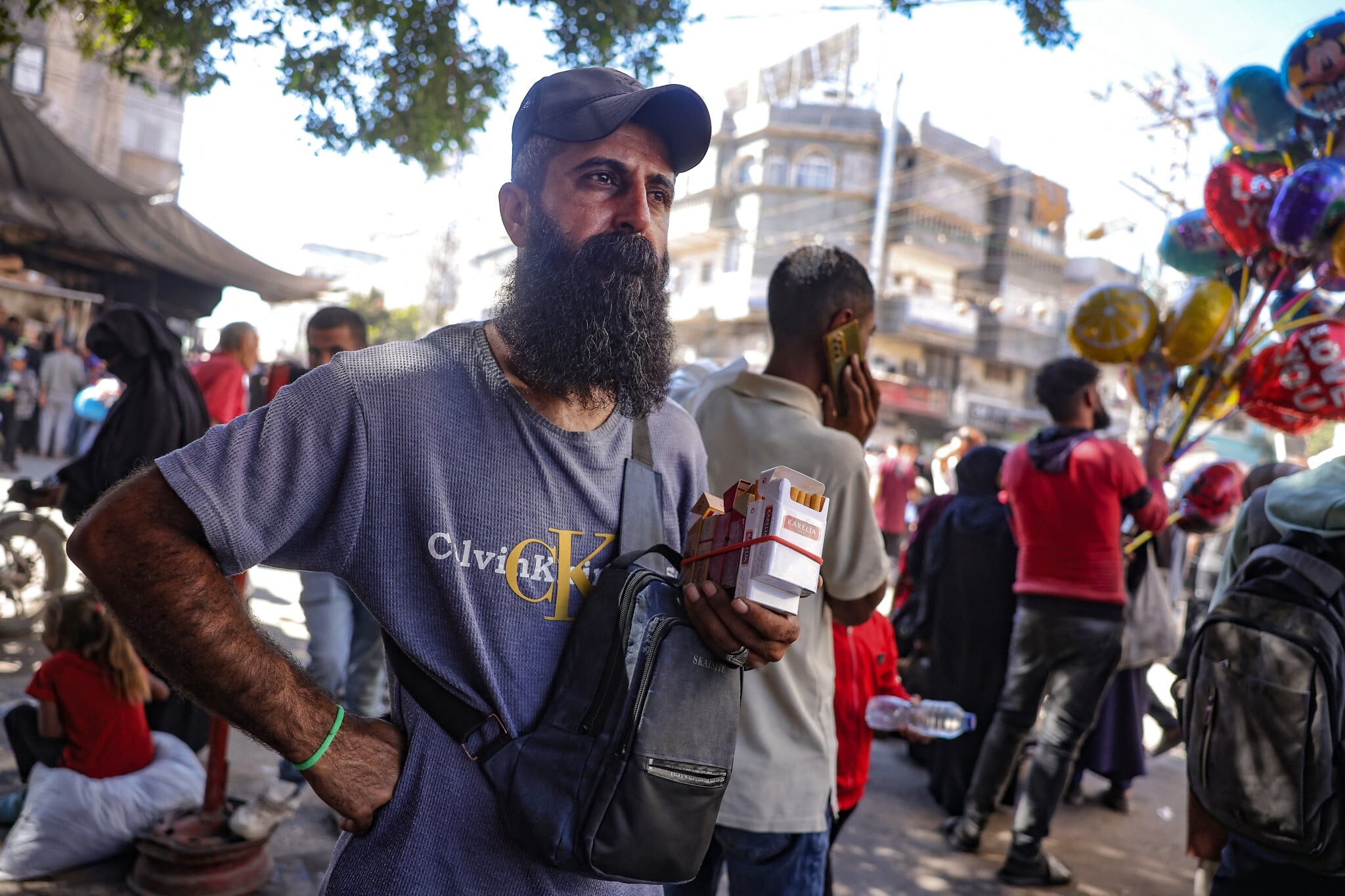 A man selling cigarettes in the Gaza Strip on 18/10/2025. Photo: AFP