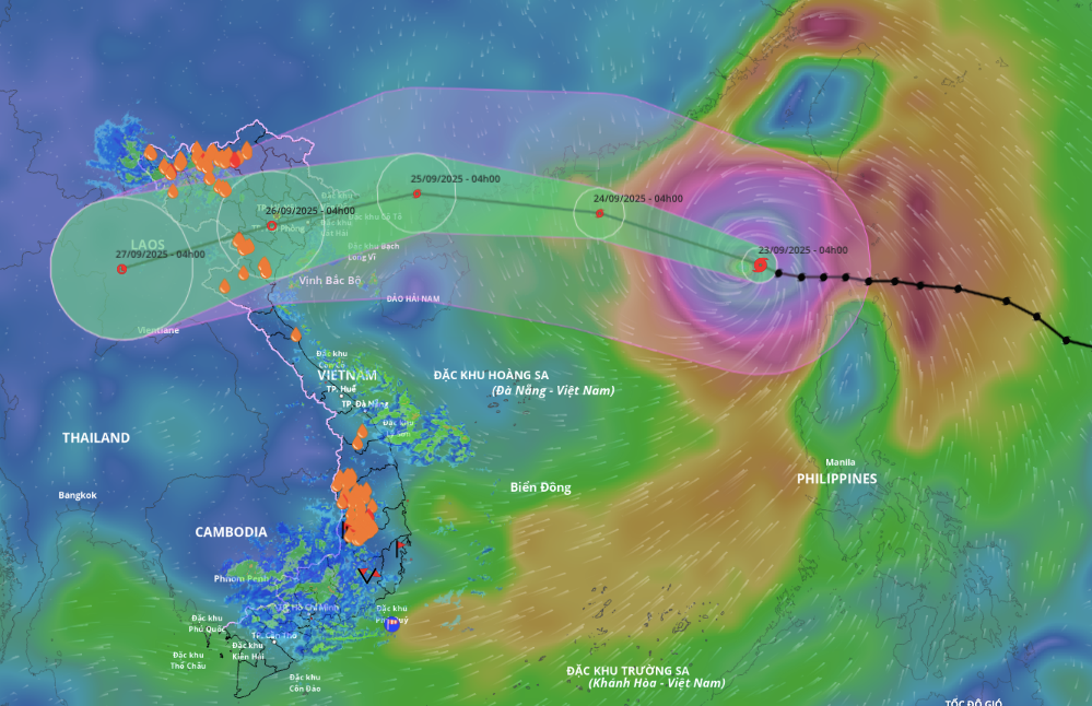 According to Vietnam’s National Center for Hydro-Meteorological Forecasting, by 4 a.m. on 25/9, Typhoon Ragasa will be over southern Guangzhou province, with maximum sustained winds of level 12 and gusts of 15, moving west-northwest at 20-25 km/h. The typhoon is then expected to rapidly weaken into a tropical depression, and by 4 a.m. on 26/9, it will be over northern Vietnam, with wind speeds reduced to level 6 and gusts of 8.