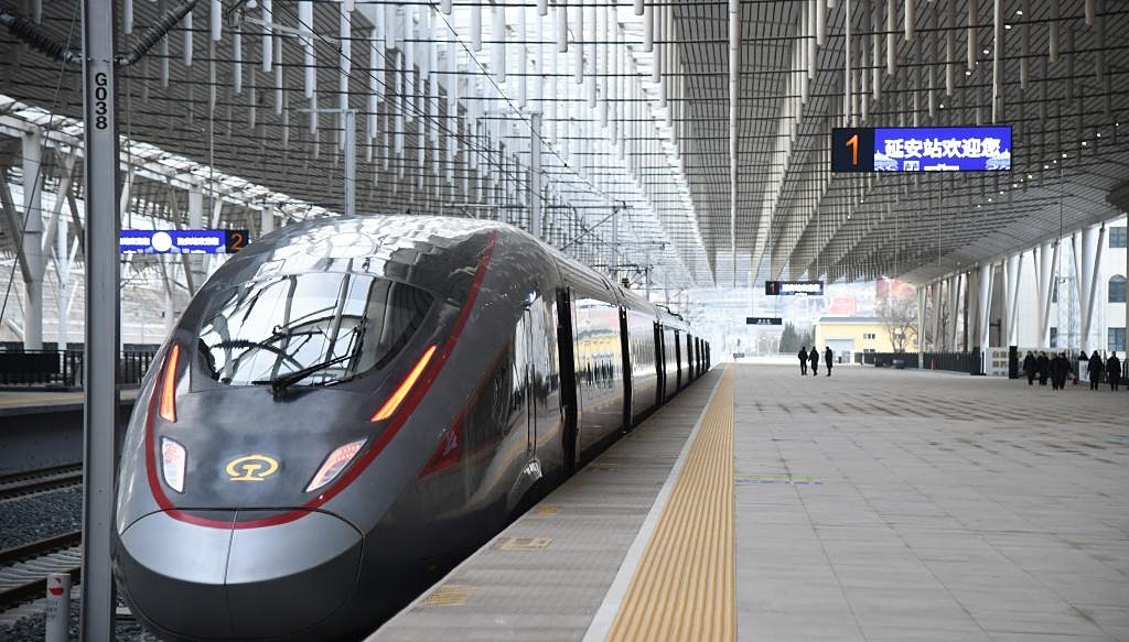 Fuxing train parked at Yan'an station on the Xi'an-Yan'an high-speed railway line, morning of 26/12. *Photo: Xinhua*