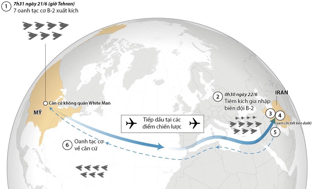 Around the time the B-2 bombers entered Iranian airspace, a US submarine in the Indian Ocean launched a volley of Tomahawk cruise missiles at the Isfahan nuclear facility. The US military calculated the Tomahawk missiles to reach their targets immediately after the seven B-2s had released all their bombs, aiming to maximize the element of surprise.