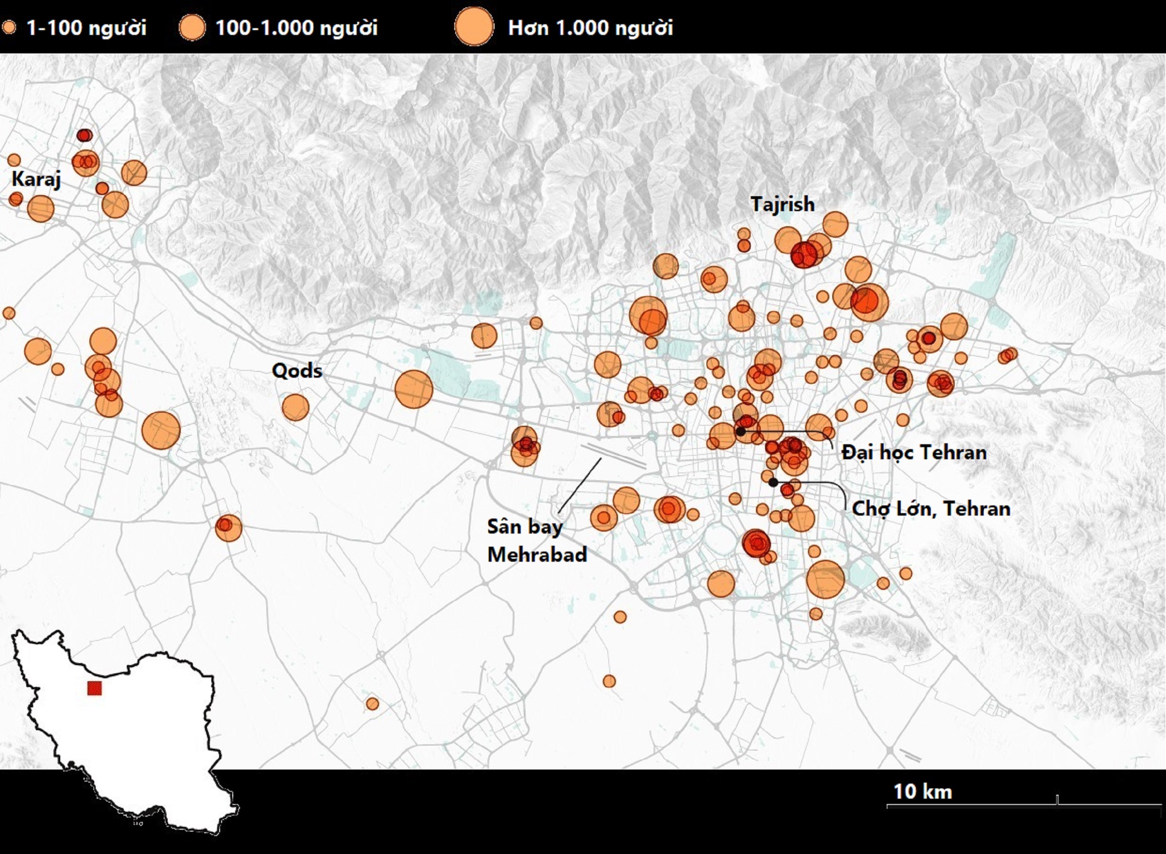 Protest locations in Tehran from 29/12/2025 to 10/1/2026. Graphic: Guardian |
