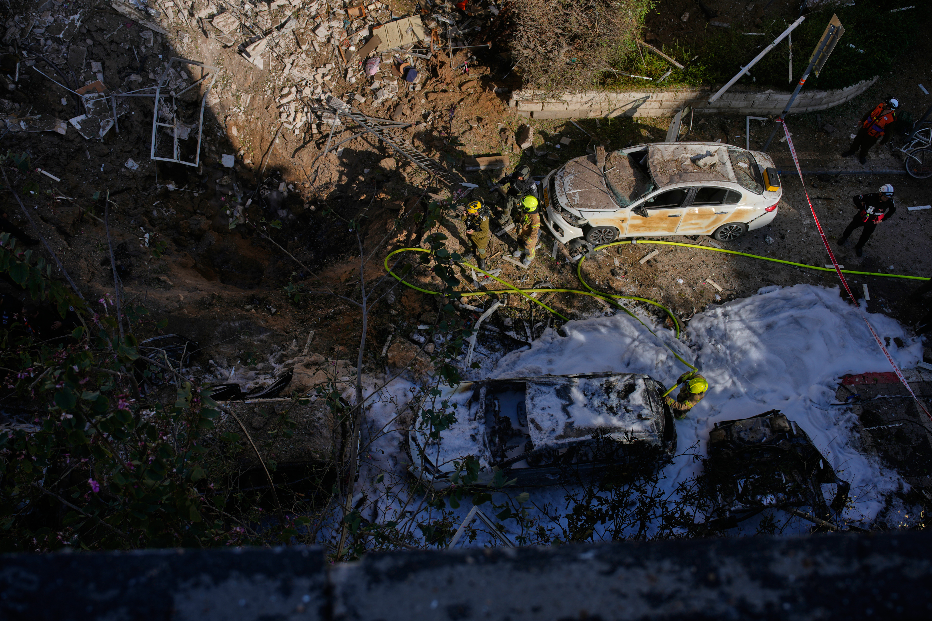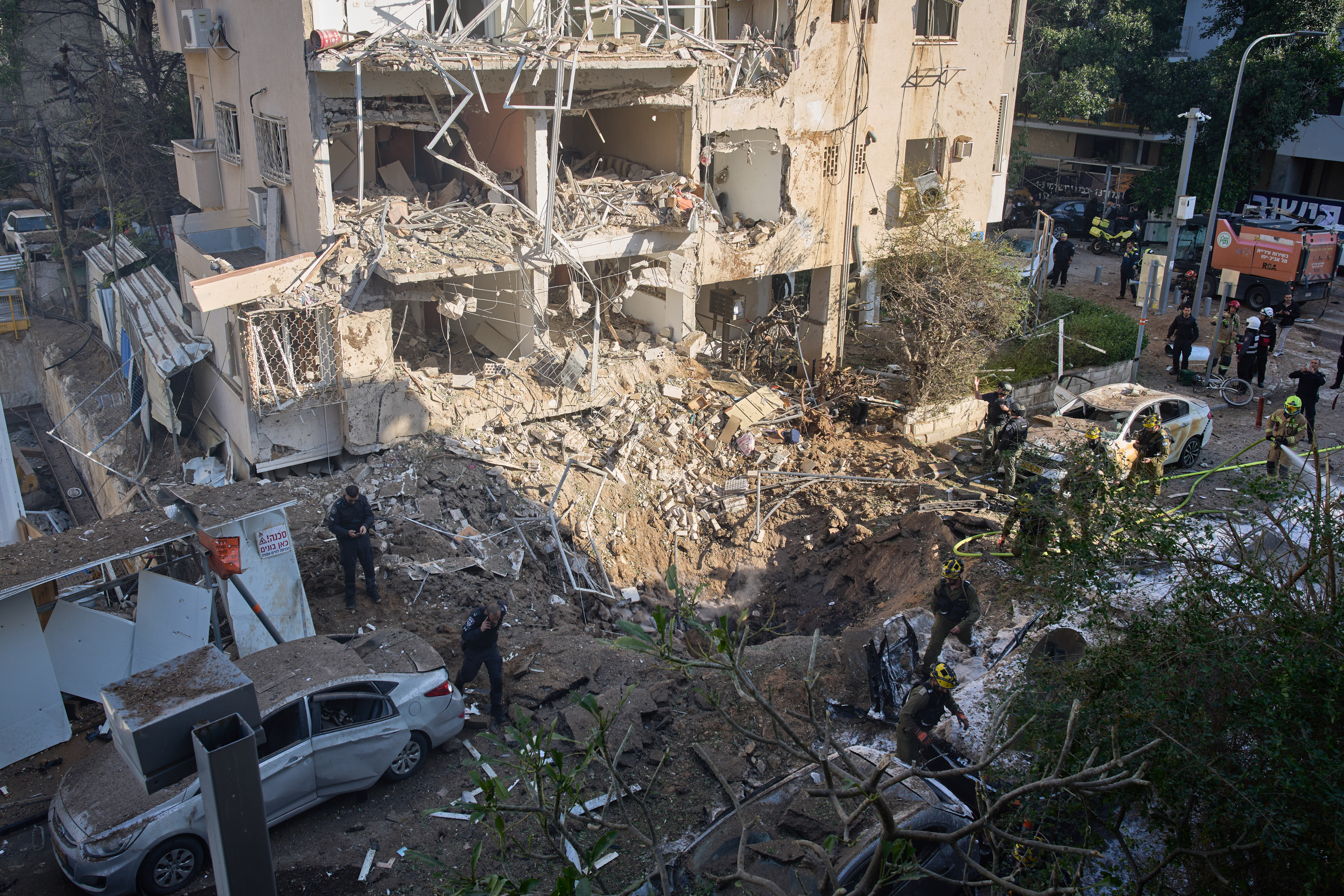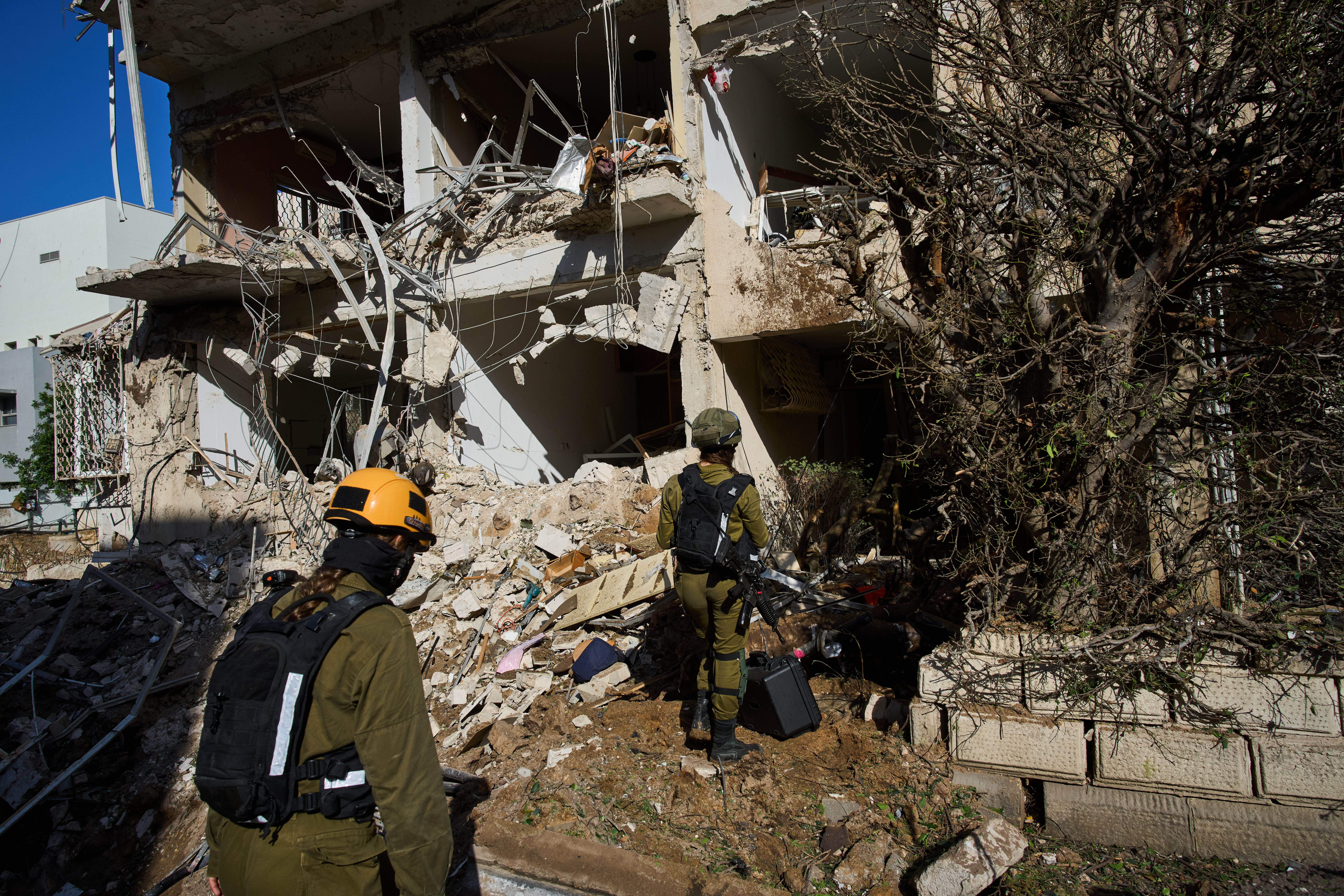 Rescue workers were inside a damaged house in Tel Aviv.