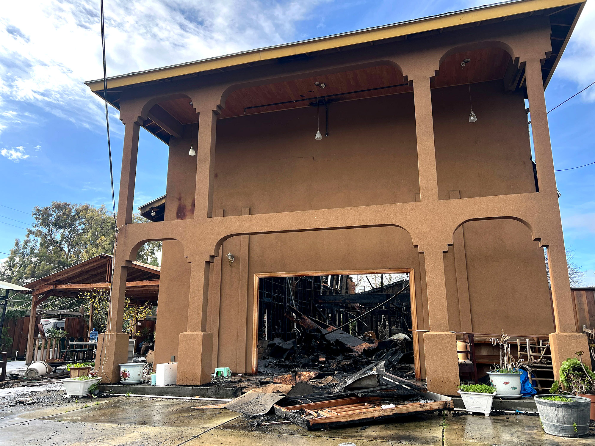 The scene of the Duyen Giac pagoda fire in San Jose, Santa Clara county, California, on 5/1. *KQED*