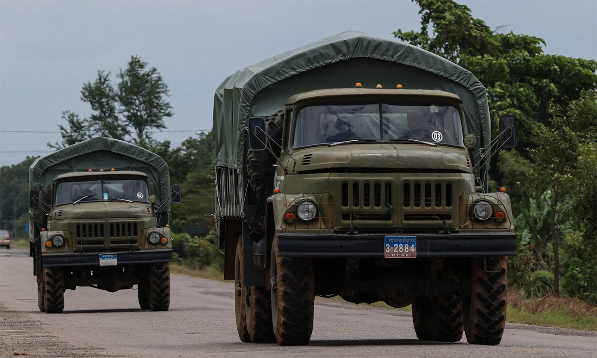 Military vehicle on a road in Cambodia in 7/2025. Photo: Reuters |