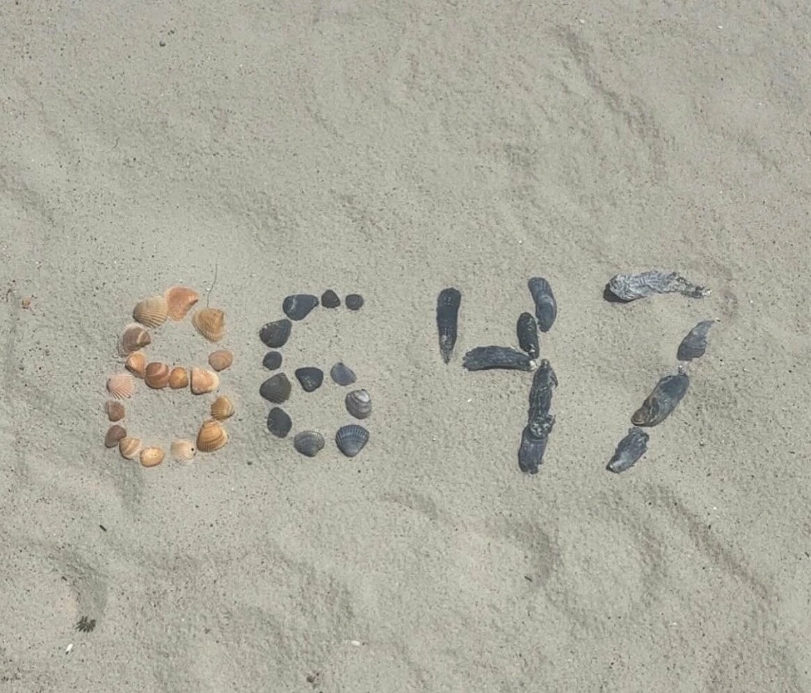 Photo of the "8647" number sequence made from seashells, posted by former FBI director James Comey on social media in 2025. *Instagram/James Comey*.