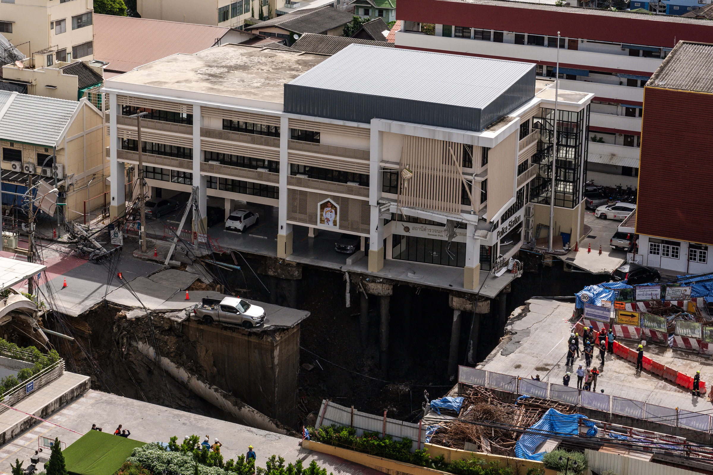 By 3 p.m. that day, further subsidence was observed. Channel 8 reported the road had sunk an additional 2 meters, raising concerns about the safety of the nearby Samsen police station. Local officials are assessing the structural stability of buildings near the sinkhole, especially the hospital and police station.