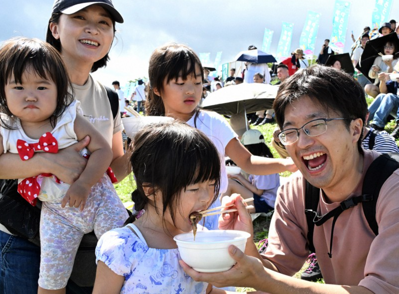 Kohei Sato, 40, who brought his family from Tsuruoka city within the prefecture to Yamagata for the event for the first time, said the aroma of the soup filled the riverbank.