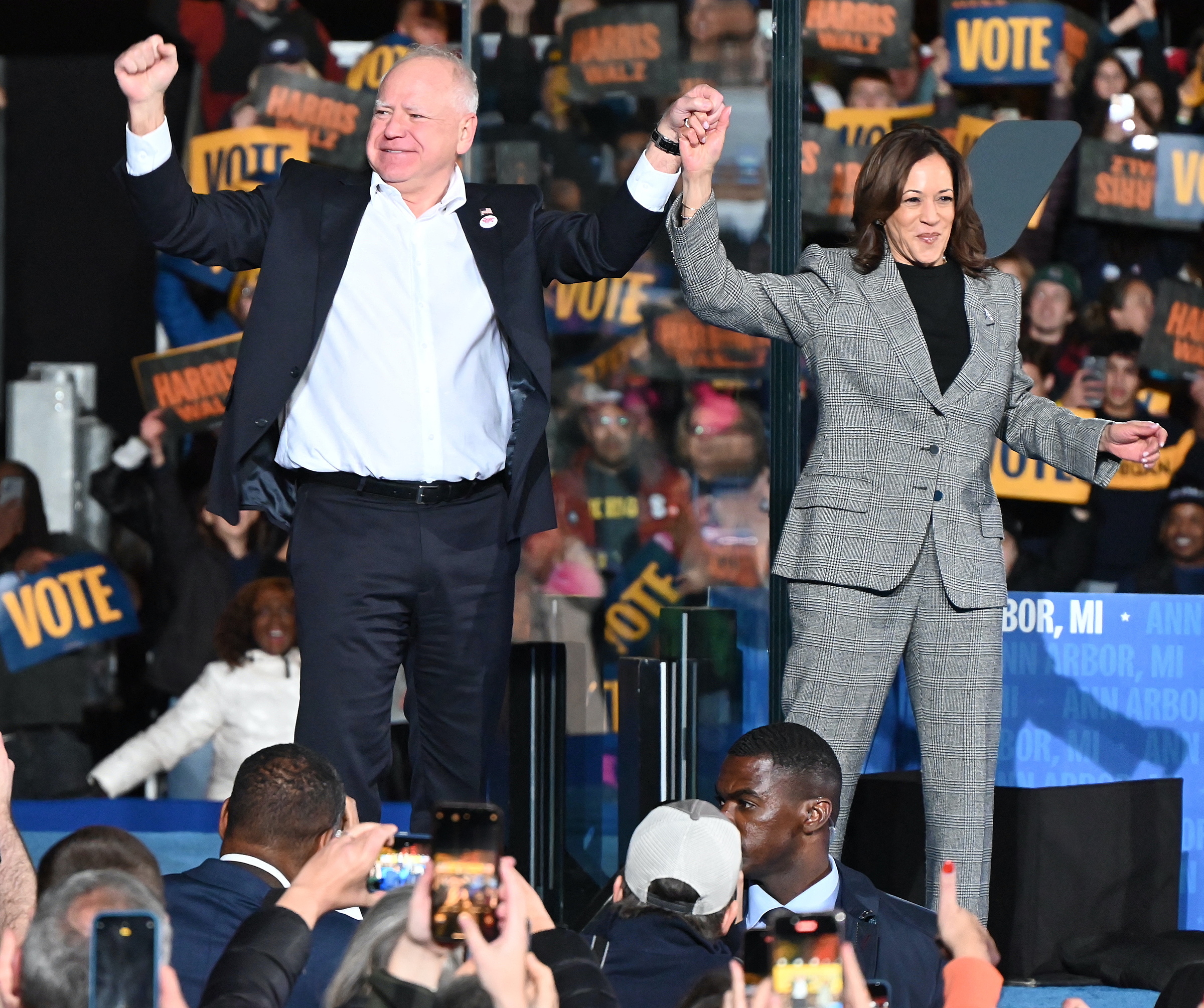Kamala Harris and Tim Walz at a campaign event in Ann Arbor, Michigan, in October 2024. Photo: AFP.