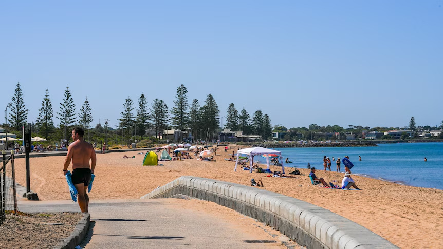 Visitors on a Melbourne beach on the hot day of 27/1. Photo: ABC News