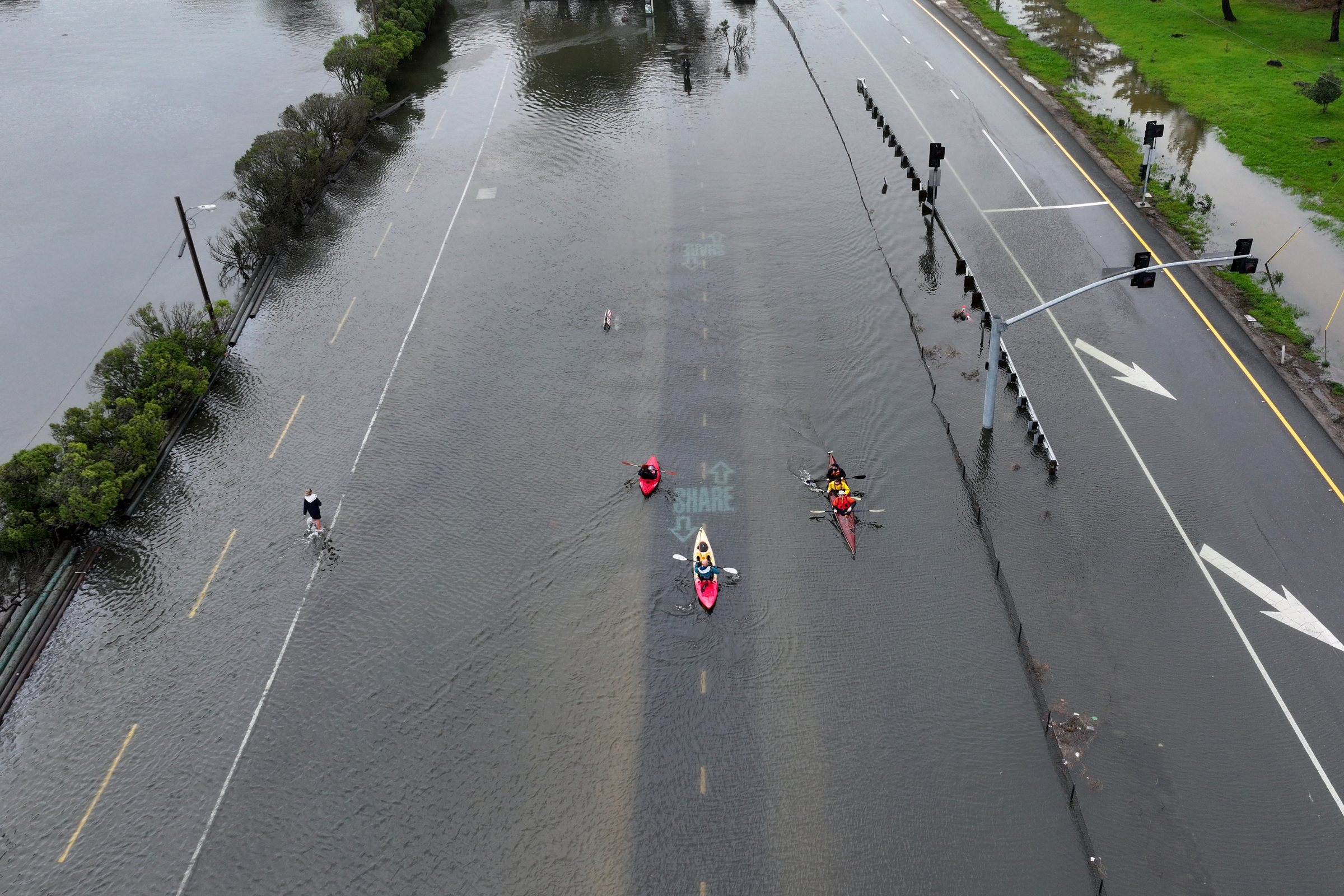 Residents kayak on flooded streets in Mill Valley, California. Photo: AFP.