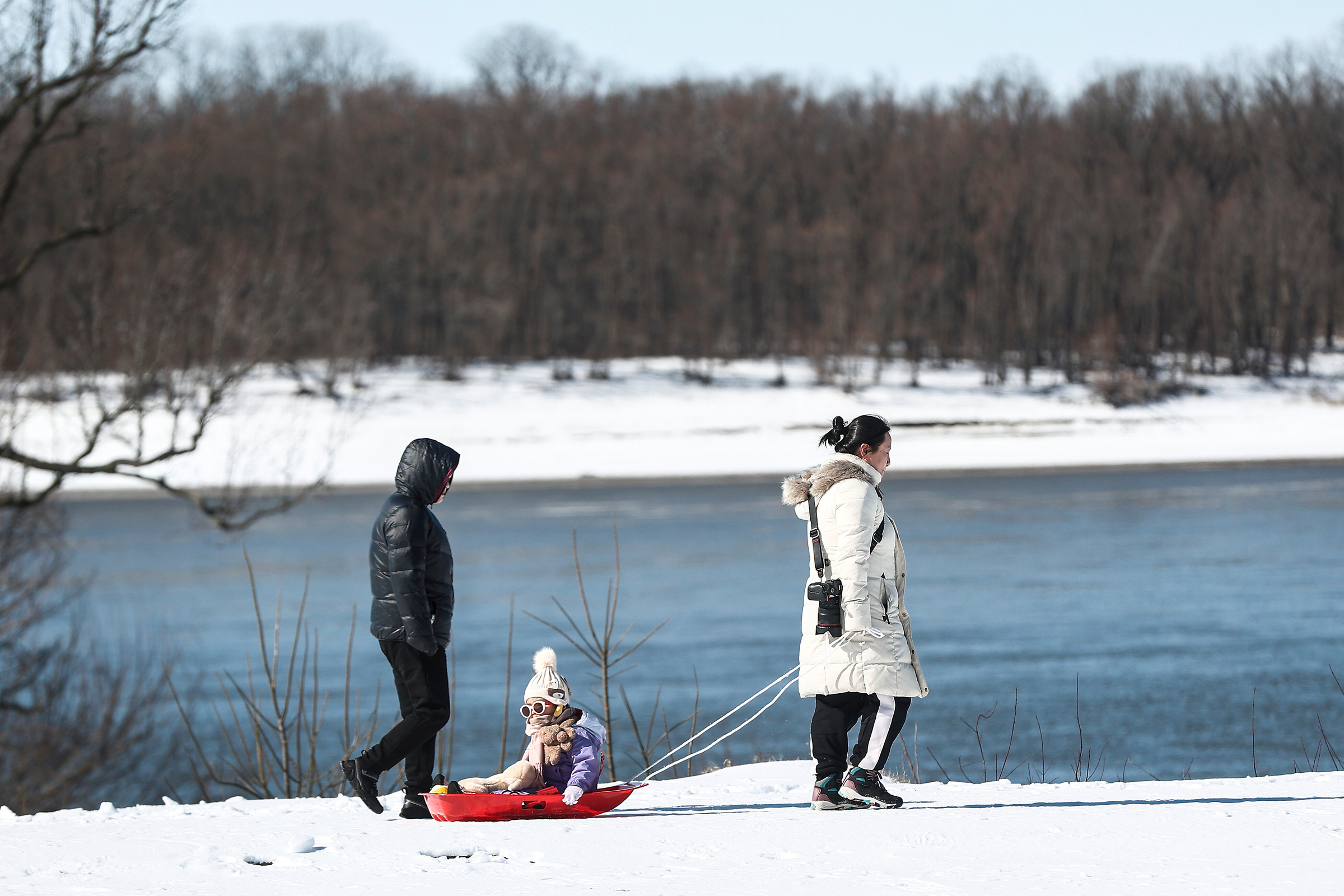 A family walks in Mud Island Greenbelt park in Memphis, 26/1. *Photo: AP*