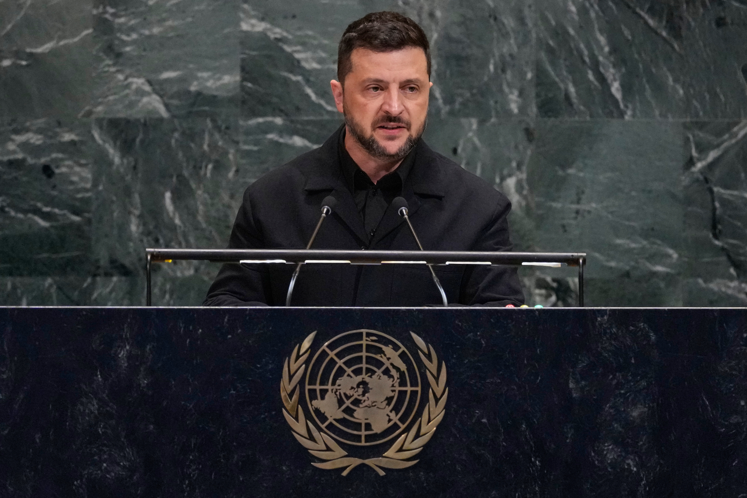 Ukrainian President Volodymyr Zelensky addresses the UN General Assembly in New York, USA on 24/9. Photo: AP