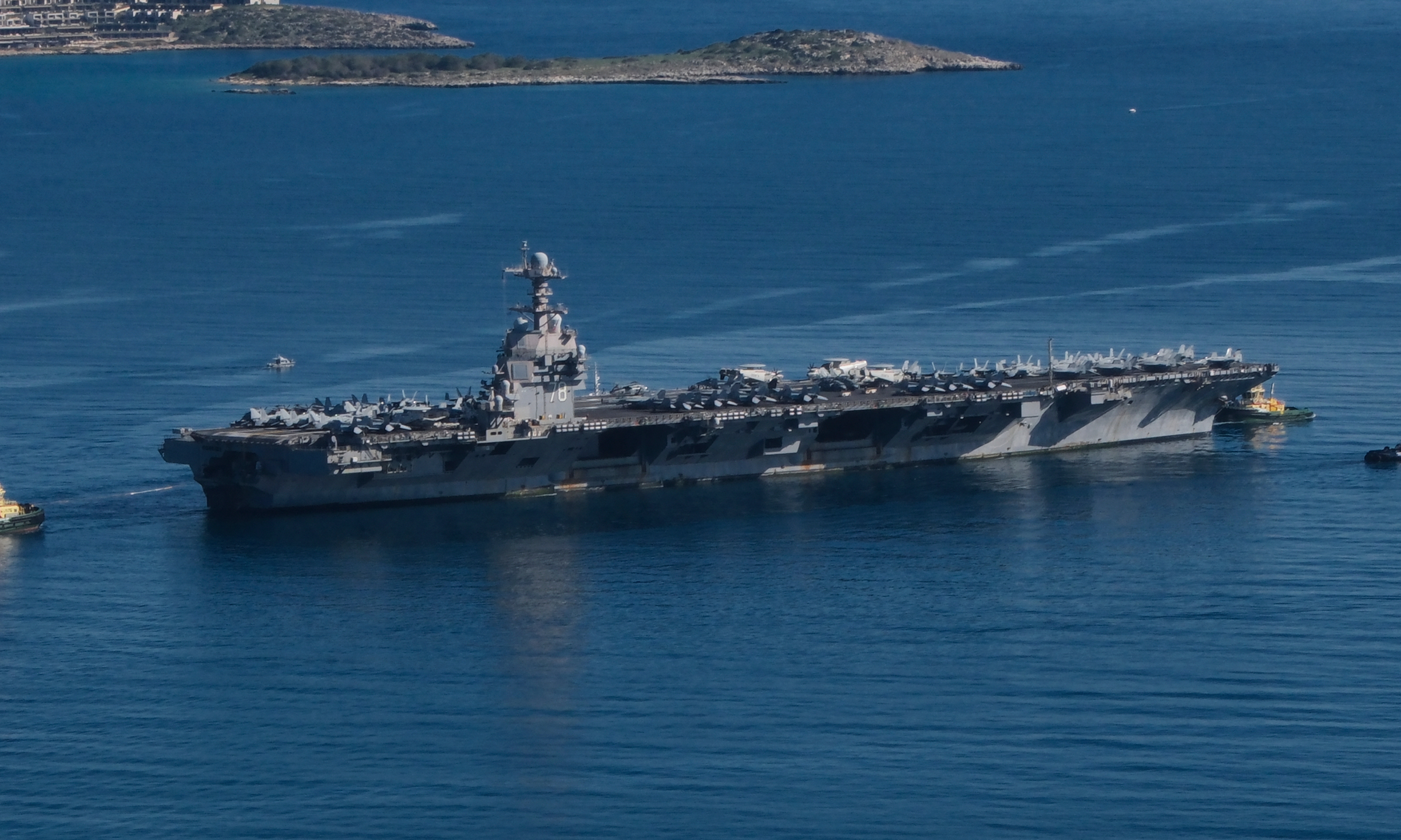 USS Gerald R. Ford leaving Souda naval base on Crete on february 26.