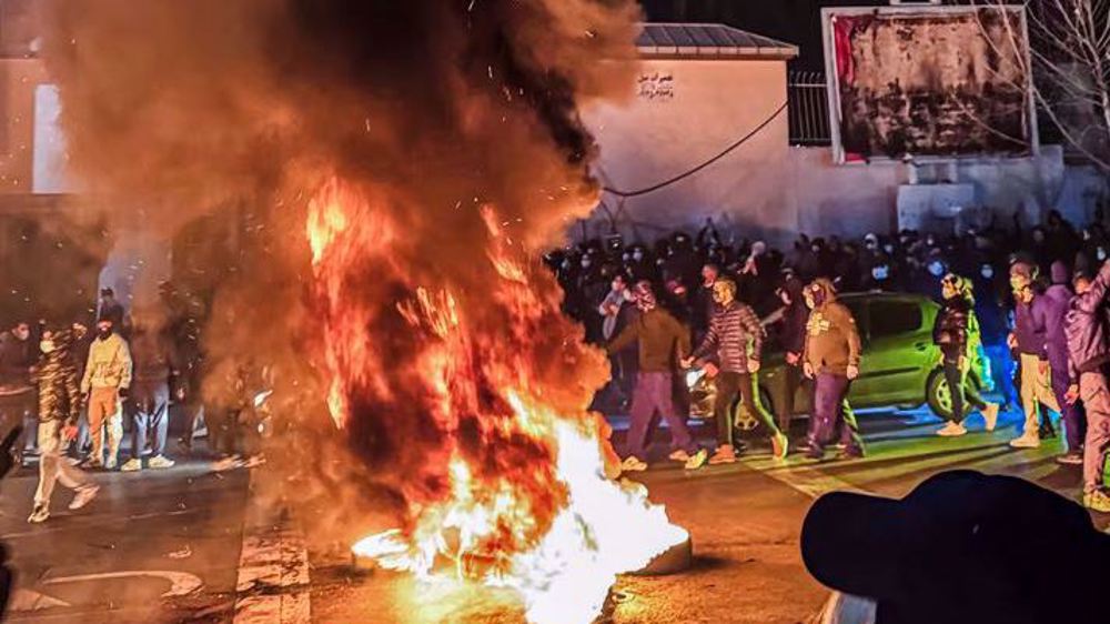 Protesters burn tires on a street in Iran's capital Tehran on 9/1. Photo: Tasnim