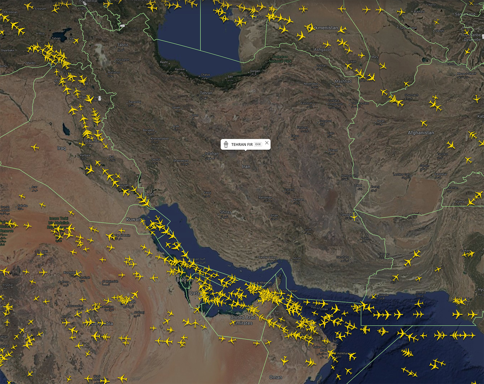 Iran's airspace on the morning of 15/1. Graphics: FlightRadar24