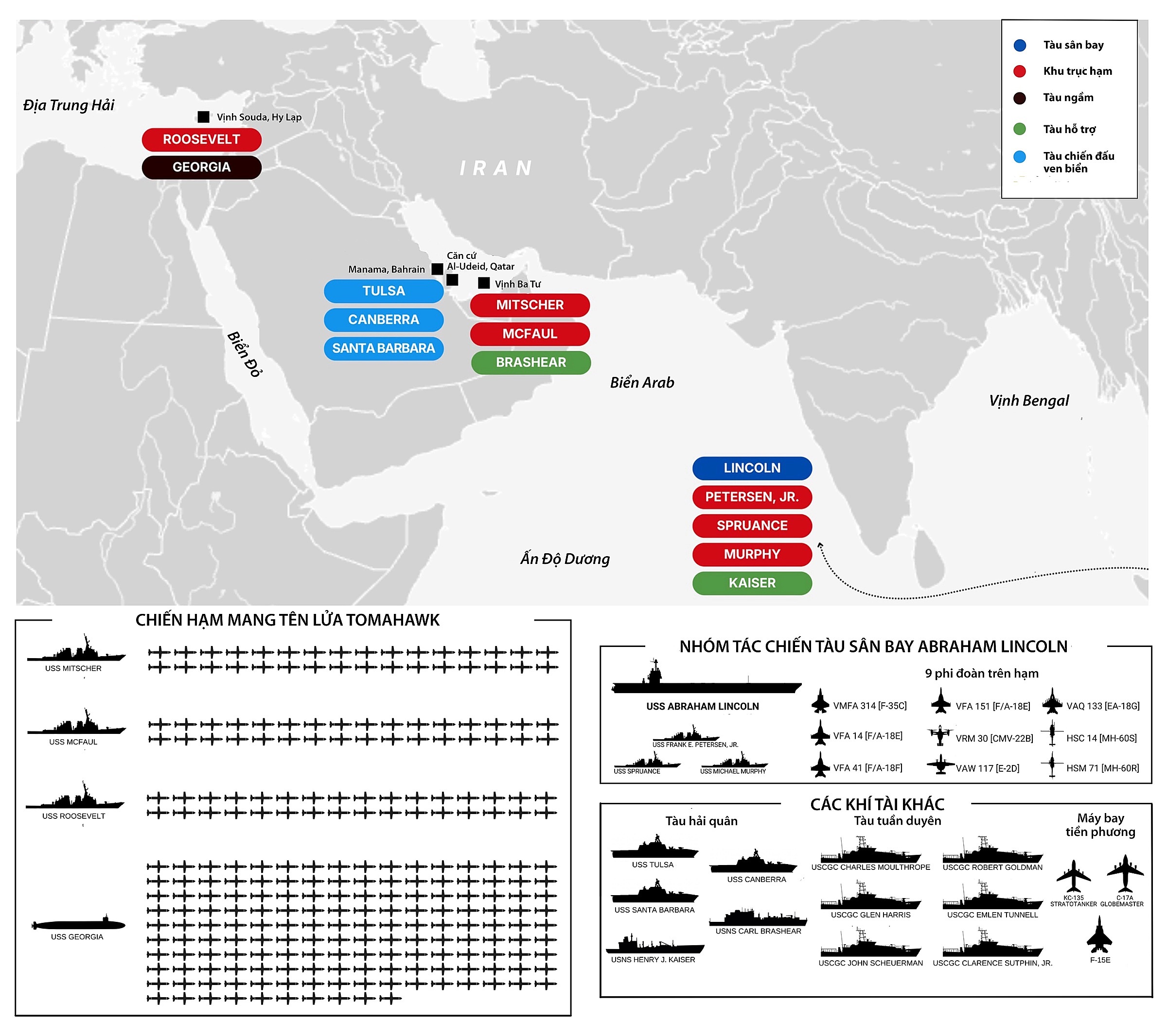 US warship formation deployed near Iran. Graphic: IEJ Media. |