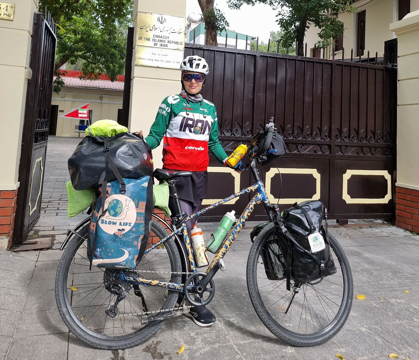 This cycling journey offers Eskandari the opportunity to travel through villages and cities from north to south, allowing her to interact with locals and experience Vietnamese culture and customs firsthand. Born in Isfahan, Eskandari serves as a peace and friendship ambassador from the Iranian people to Asian countries. She intends to complete her trans-Asian cycling trip, traversing 22 countries, over approximately one year. She carries about 100 kg of luggage on her bicycle, including essentials for cooking, setting up a tent for sleeping, and even bike repair tools.
