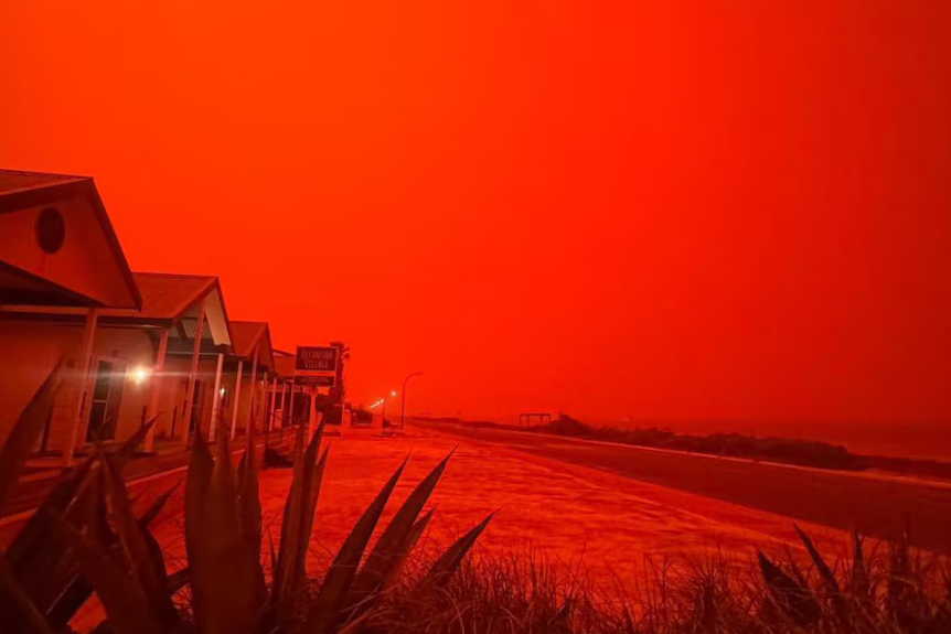 Sky turns orange-red in Denham, Western Australia, 27/3. *Photo: Guardian* |