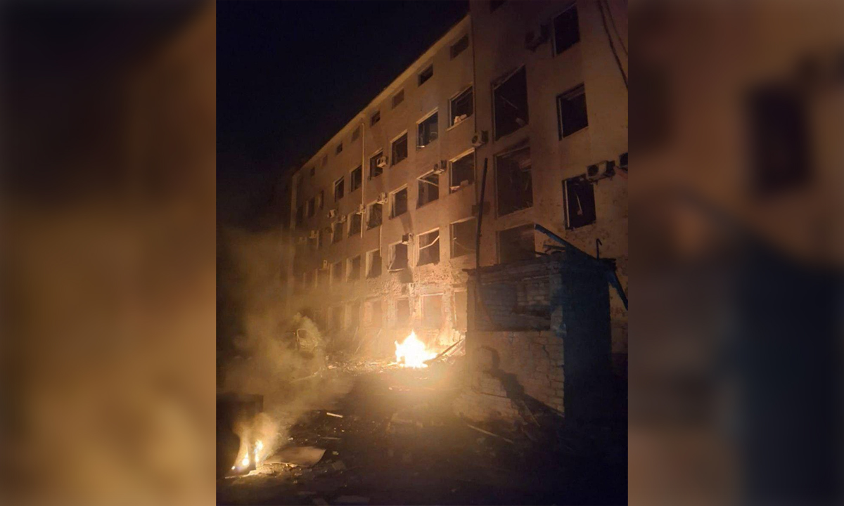 The scene of the strike on a building believed to be the SBU headquarters in Kryvyi Rih, Dnipropetrovsk province. Photo: X/AMK Mapping |