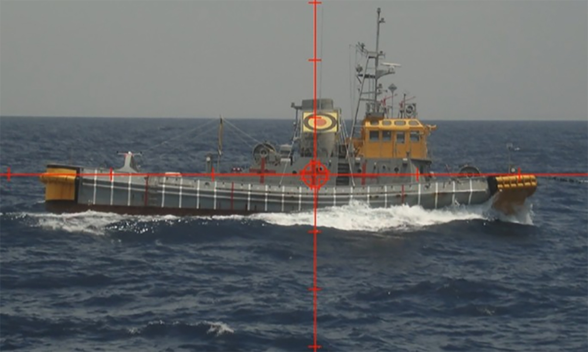 Another image reveals a tugboat used as the target, with the railgun's crosshairs aimed at its smokestack. ATLA has not released images of the target after being hit or details about the damage inflicted.