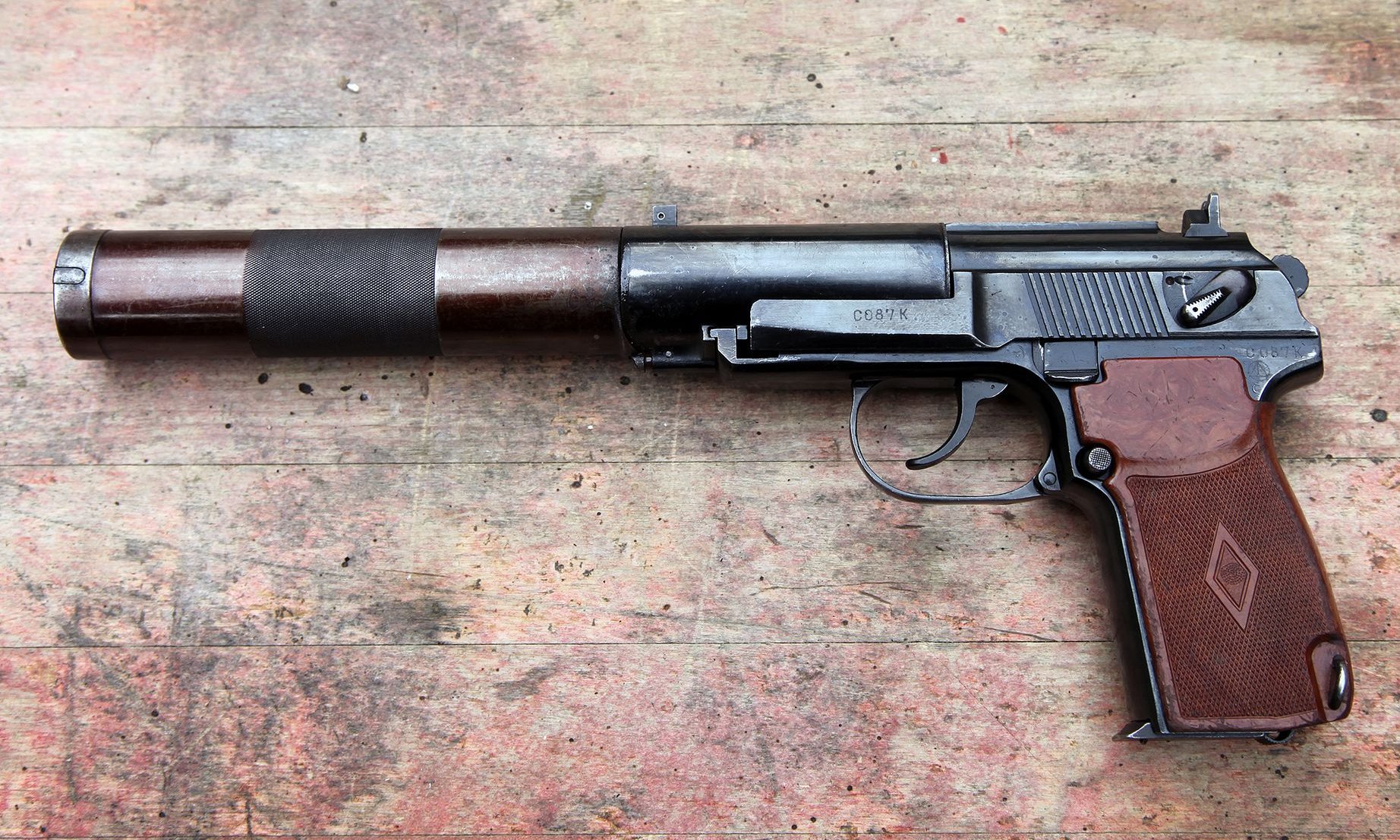 The suppressed version, known as the PB, was issued to Soviet reconnaissance and intelligence forces starting in 1967. Its external appearance is quite different from the pistol allegedly used by suspect Korba. This leads experts to believe that the suspect may have used a modified PM pistol to attach a suppressor for the attempted assassination.
