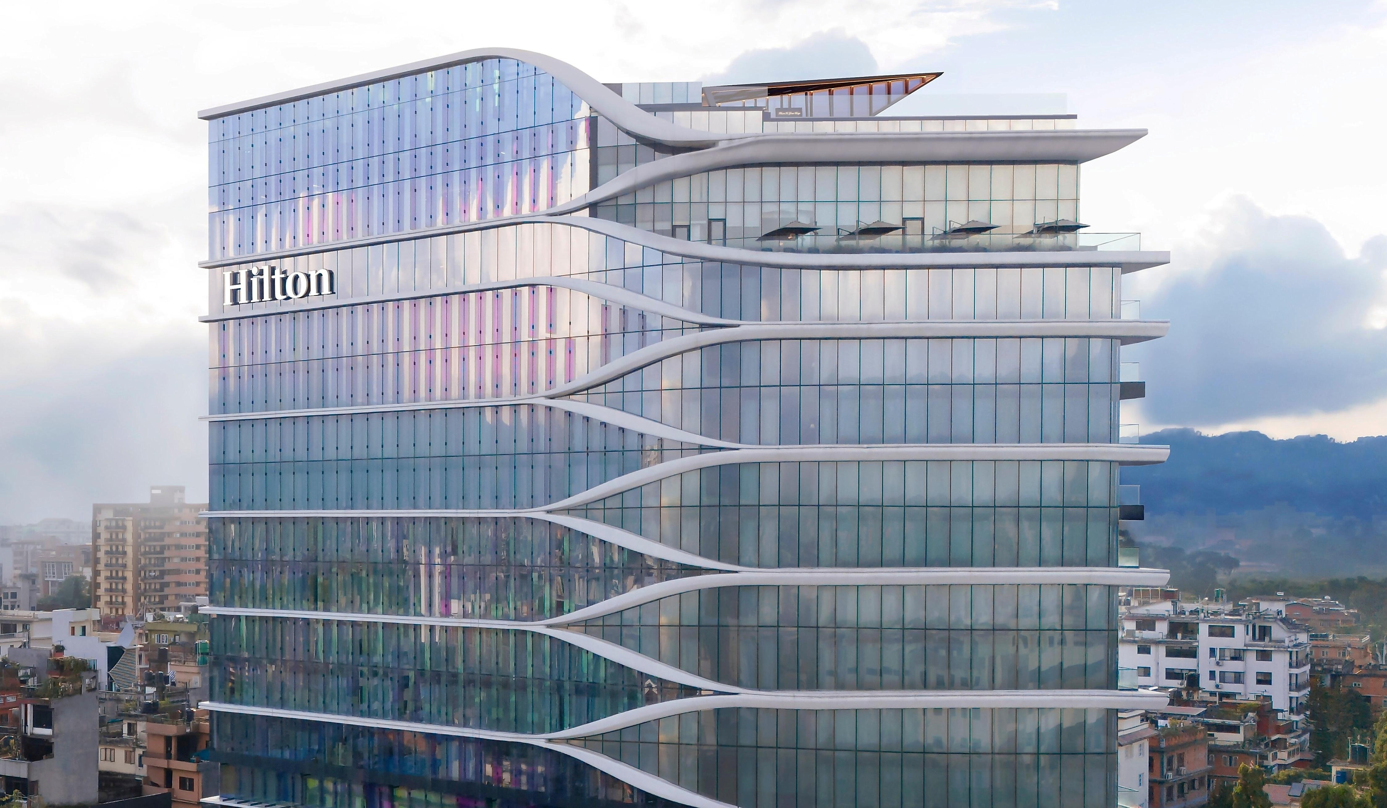 The Hilton Kathmandu, a symbol of the capital and Nepal's aspirations for international tourism, was also targeted. Construction began in 2016, and the hotel opened in 2024 with a total investment of 57 million USD. Its design integrates with the surrounding landscape, facing both the urban life of Kathmandu and the Langtang mountain range. The facade features vertical glass panels inspired by Buddhist prayer flags, changing color with the light.