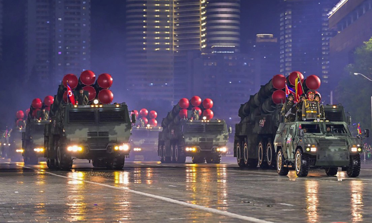 Rocket artillery with 6 launcher tubes during a parade in Pyongyang in October. Photo: KCNA