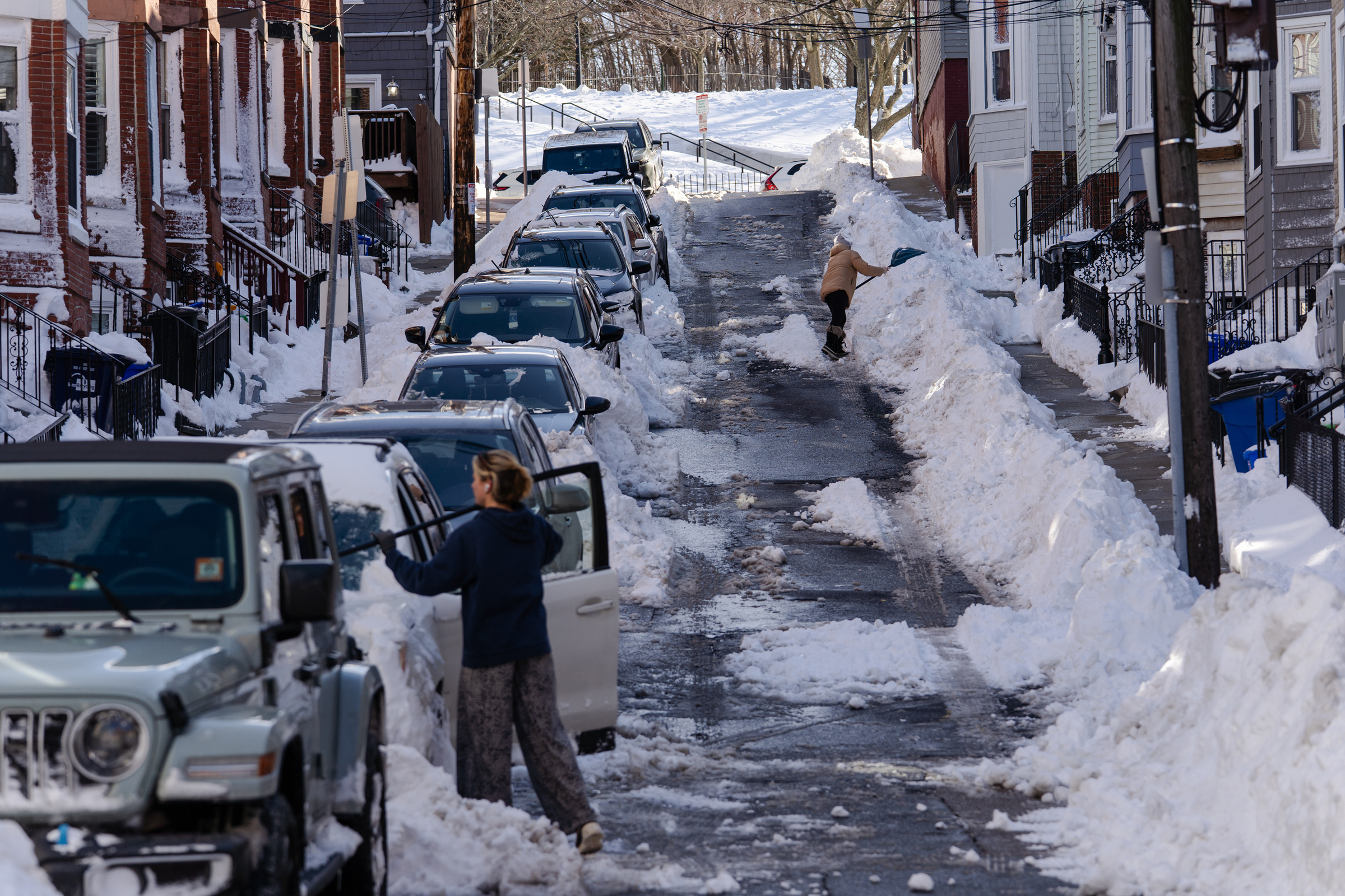 South Boston residents cleared thick snow from their vehicles on 24/2.