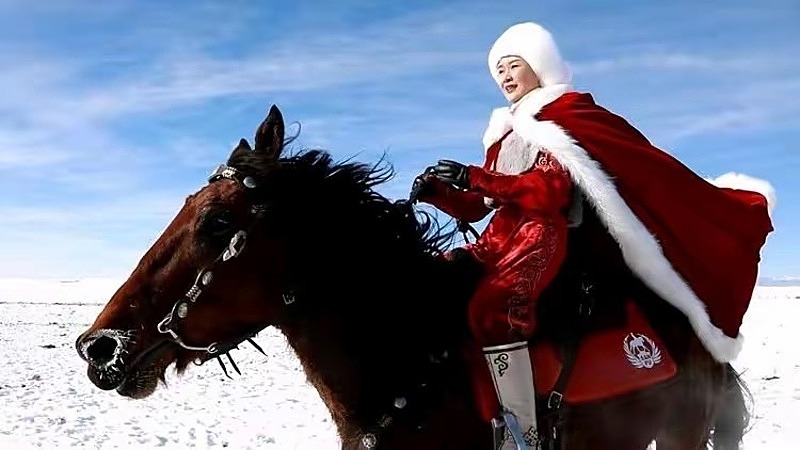 Ha Qiao Long was one of the first state officials in China to become an internet influencer. In 2020, a video of her in a red costume, riding a horse across a snow-covered field in Xinjiang, went viral with over 600 million views.