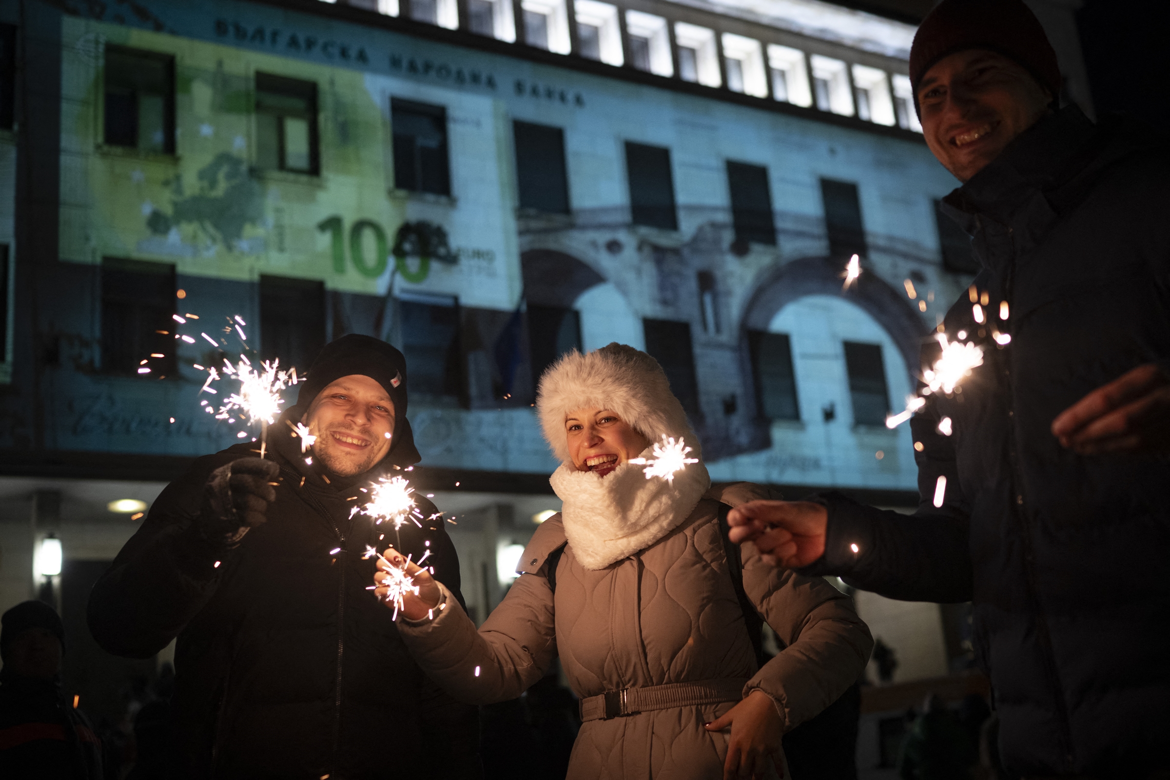 People set off fireworks to celebrate the new year in front of the Bulgarian National Bank headquarters, marking the day the country began using the euro. Bulgaria is the 21st country to use the euro. This is a significant milestone, occurring almost 20 years after the nation joined the European Union.