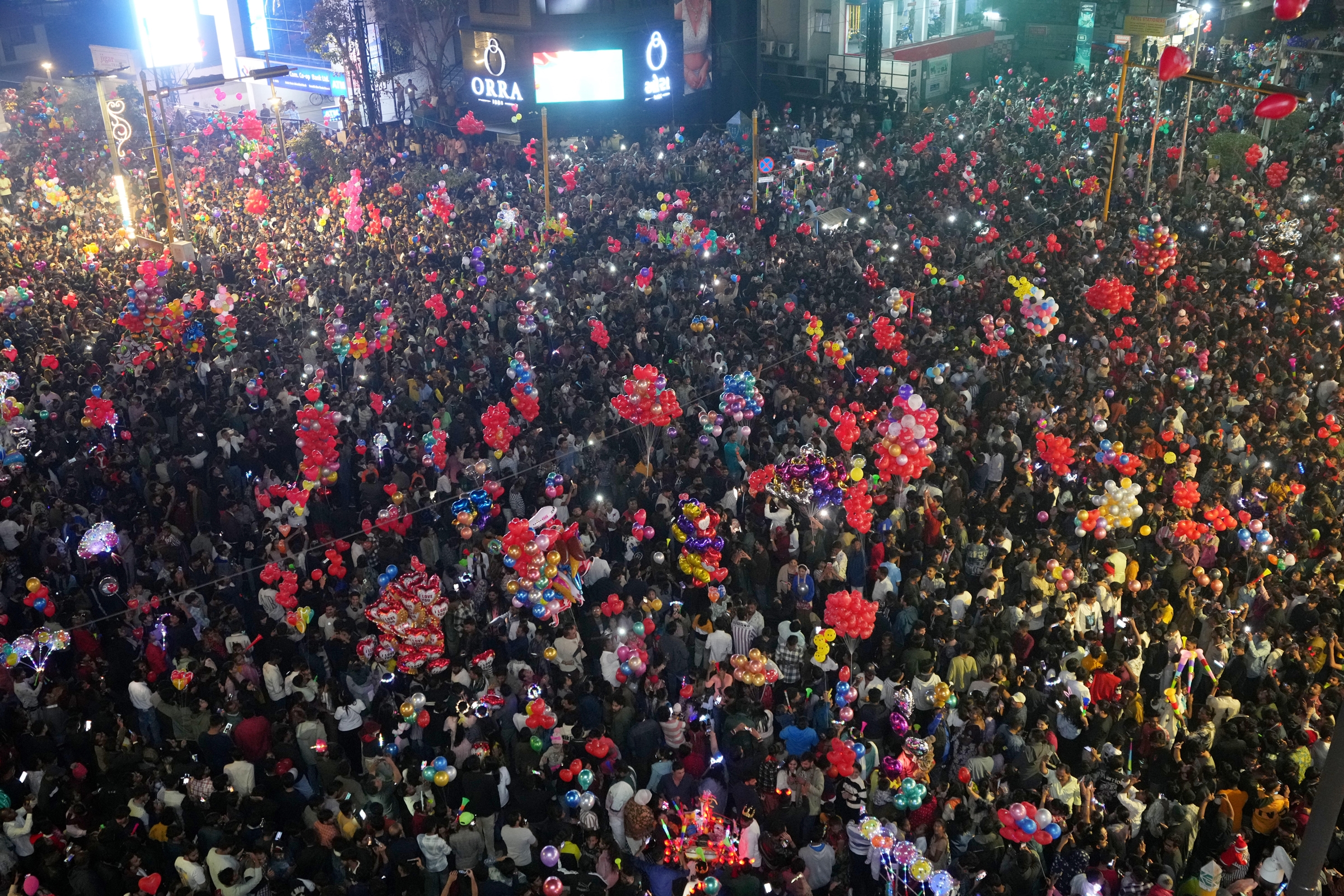 People in India released balloons to celebrate the new year on CG Road in Ahmedabad, Gujarat state.
