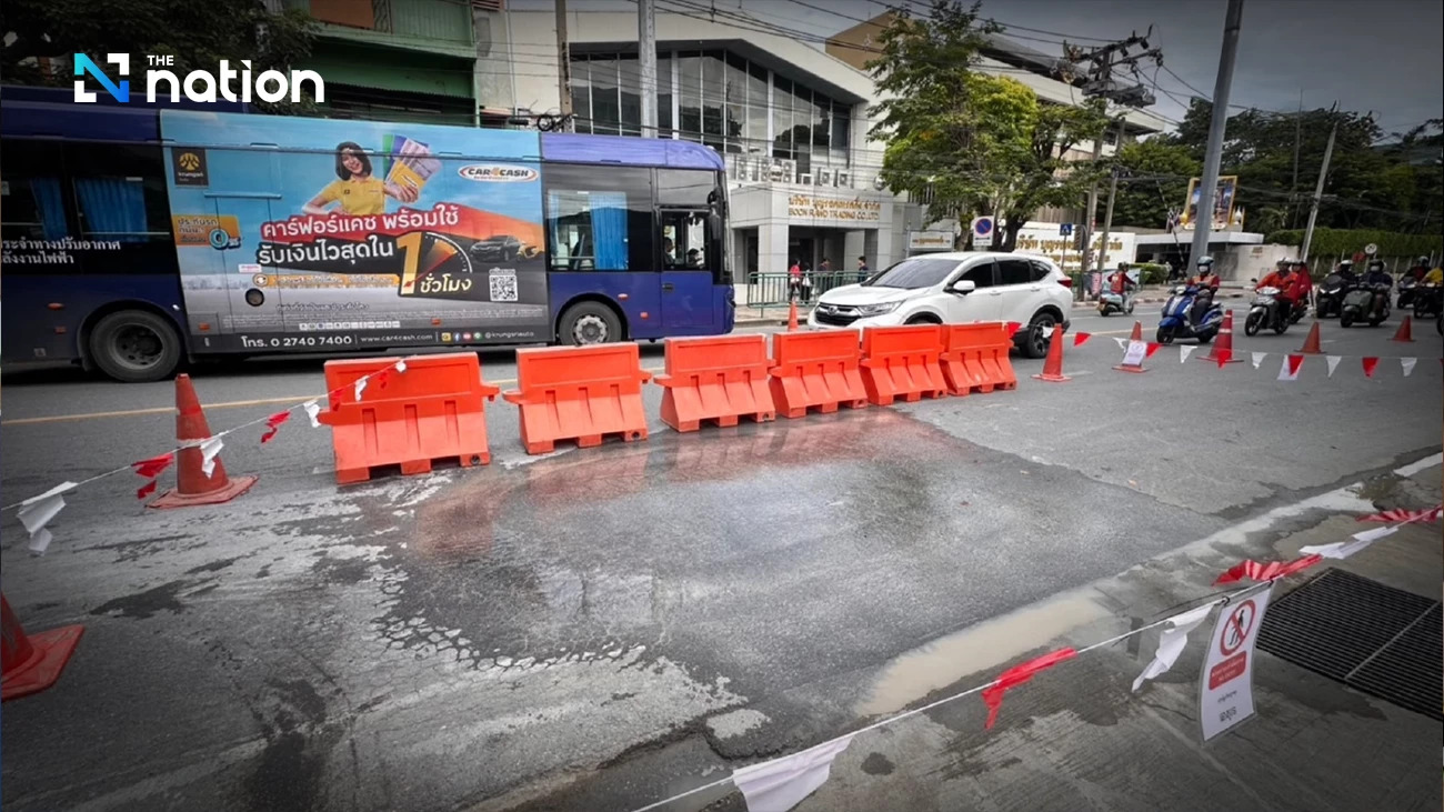 Bangkok traffic police have placed cones and barriers to close off the section of road. Officials are investigating the cause of the leak.