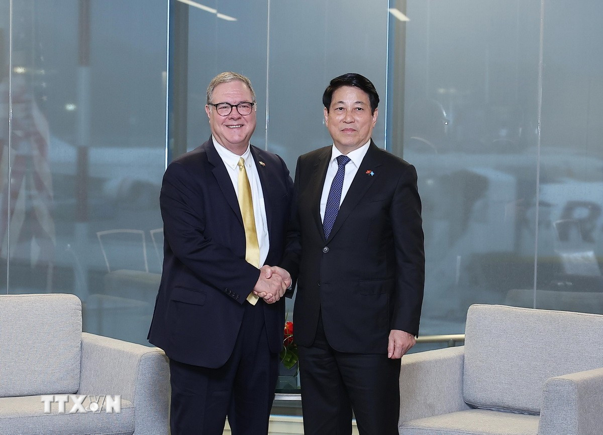 The delegation accompanying the President includes: Party Central Committee Secretary and Acting Minister of Foreign Affairs Le Hoai Trung; Deputy Prime Minister Bui Thanh Son; Director of the Presidential Office Le Khanh Hai; Minister of Industry and Trade Nguyen Hong Dien; Deputy Minister of National Defense Nguyen Truong Thang; Deputy Minister of Public Security Le Quoc Hung; Vietnamese Ambassador to the US Nguyen Quoc Dung; and other leaders from various ministries and sectors.