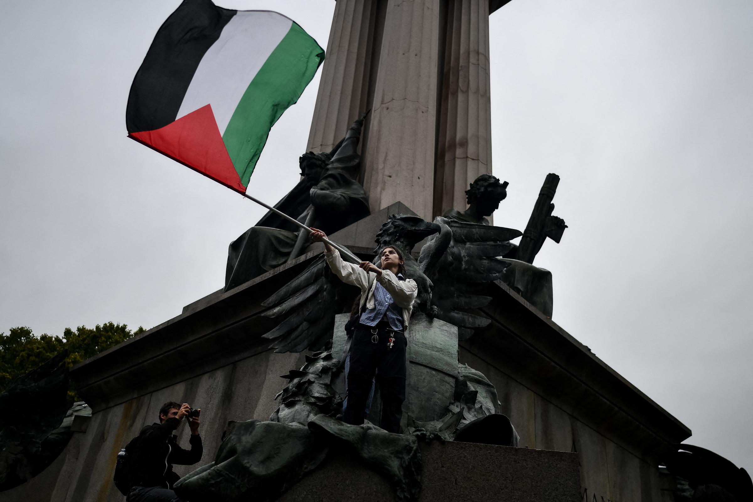 In Rome, police estimated that 20,000 people gathered in front of the central station, many of them students carrying Palestinian flags and chanting anti-war slogans like "Freedom for Palestine." Another march passed the Colosseum with banners reading "Against genocide. Stop everything."