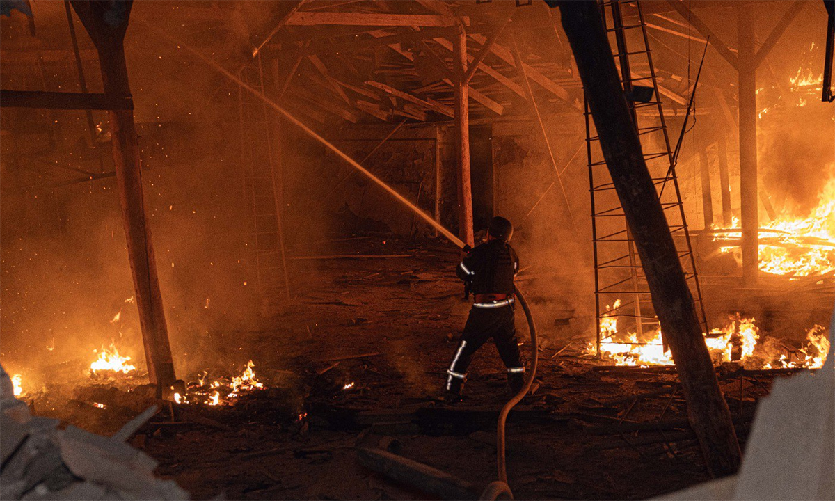 Ukrainian firefighters extinguish a fire after the Russian attack on 22/9. Photo: DSNS Ukraine |
