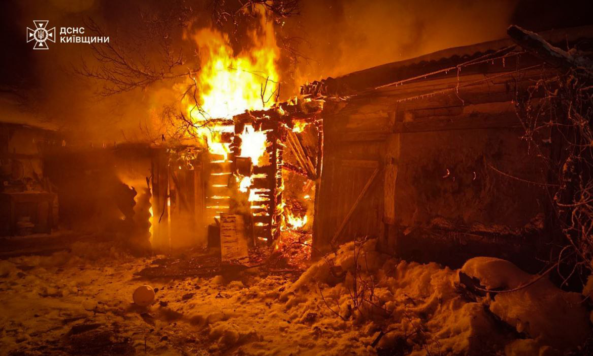 Fire in Kiev province after a Russian attack in an image posted on 13/1. Photo: SES |