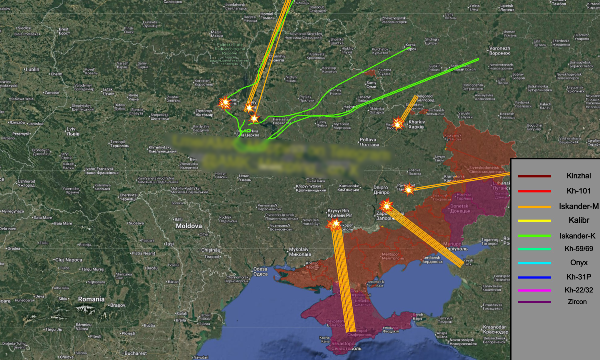 Ukraine's Air Force Command stated that Russia used a total of 18 Iskander-M ballistic missiles and modified S-300 air defense missiles, along with 7 Iskander-K cruise missiles and 293 various UAVs in the attack.