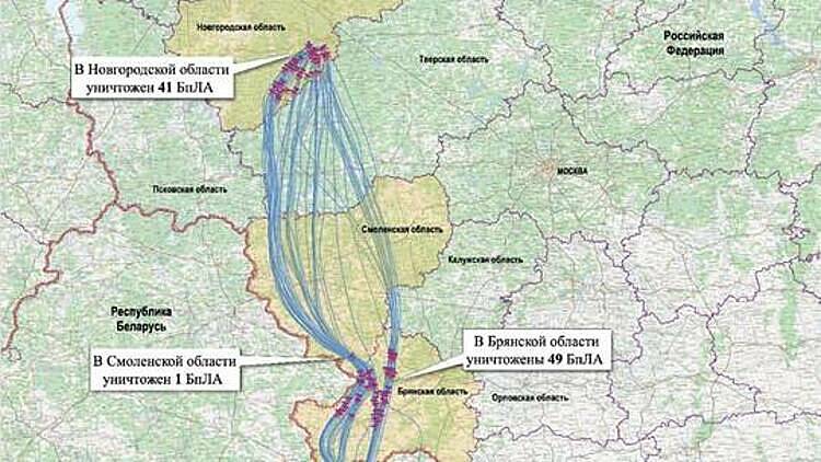 Russia released a map of UAV flight paths targeting Novgorod on the night and early morning of 28-29/12/2025. Photo: Russian Ministry of Defense