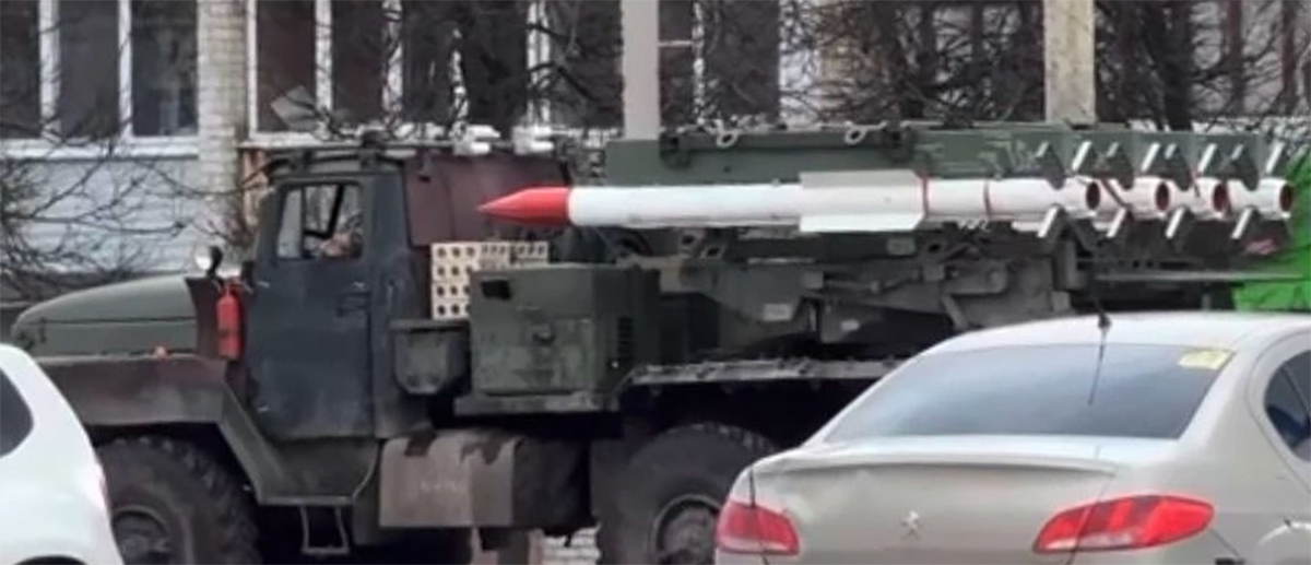 Images posted on Russian social media on 14/4 show a Ural military truck on a road in Oryol city, with a launcher carrying 4 R-77-1 medium-range air-to-air missiles mounted on the back.